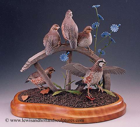 Bobwhites with Chicory and fall leaves
